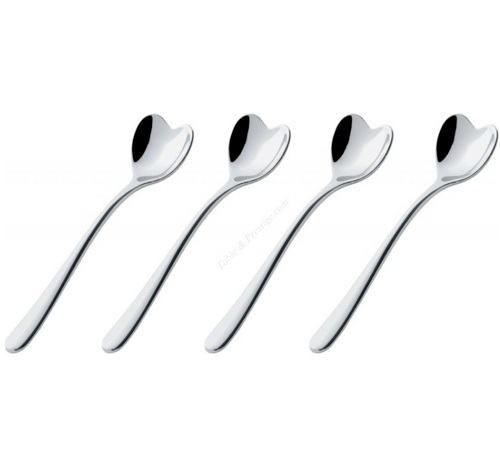 Un set di 4 cucchiaini da caffè in acciaio inossidabile 18/10 lucido del marchio Alessi. 4 eleganti cucchiai con un originale effetto specchio a forma di cuore disegnato da Miriam Mirri.