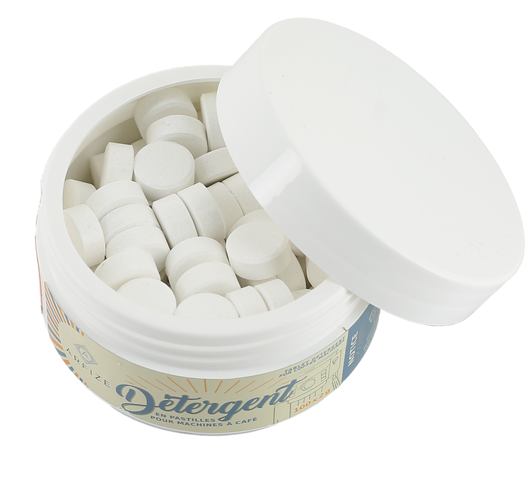- 100 pastiglie detergenti da 2 g per la pulizia della macchina da caffè. Formato monodose pratico e efficace per uso professionale.