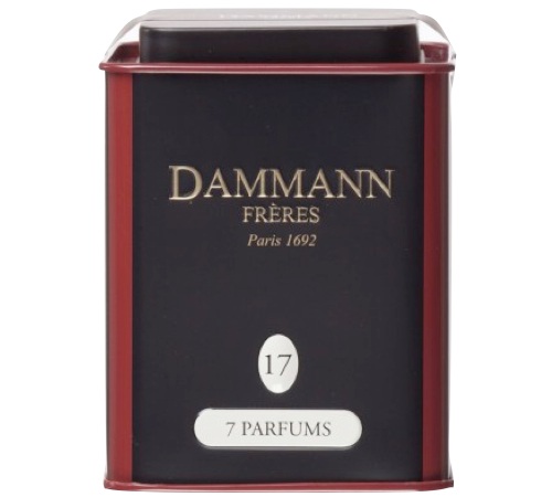 Tè nero di Cina e Ceylon da Dammann Frères confezionato in lattina di metallo da 100 g. Una ricca miscela di floreale e fruttata di tè aux Septs parfums.