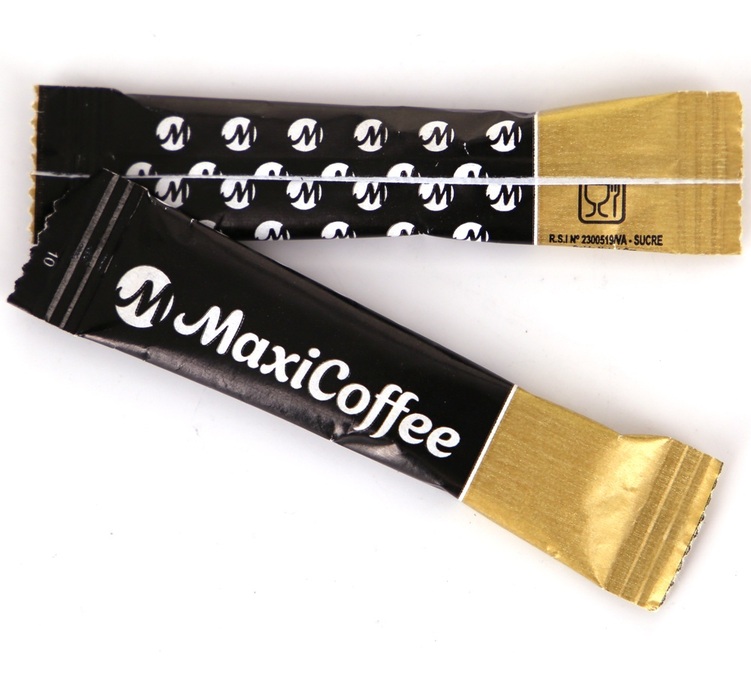 Ogni bustina di zucchero è caratterizzata dal design del marchio MaxiCoffee, lo specialista europeo del mondo del caffè!