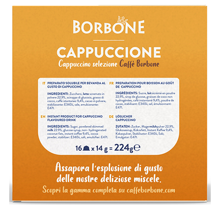 - Scatola da 16 capsule (8 caffè/8 latte)