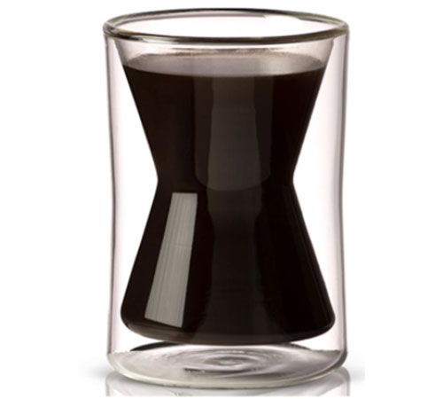 Osserva il tuo caffè da un altro punto di vista, grazie a questa tazza originale in vetro trasparente e dalla forma insolita. La doppia parete in vetro isola il calore del caffè e lo mantiene alla giusta temperatura più a lungo. Capacità 30 cl.