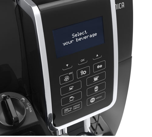 La DeLonghi Dinamica ECAM 350.55.B è una macchina da caffè automatica intuitiva e facile da usare che prepara fino a 15 bevande diverse. Macinacaffè integrato e funzione OneTouch con caraffa.