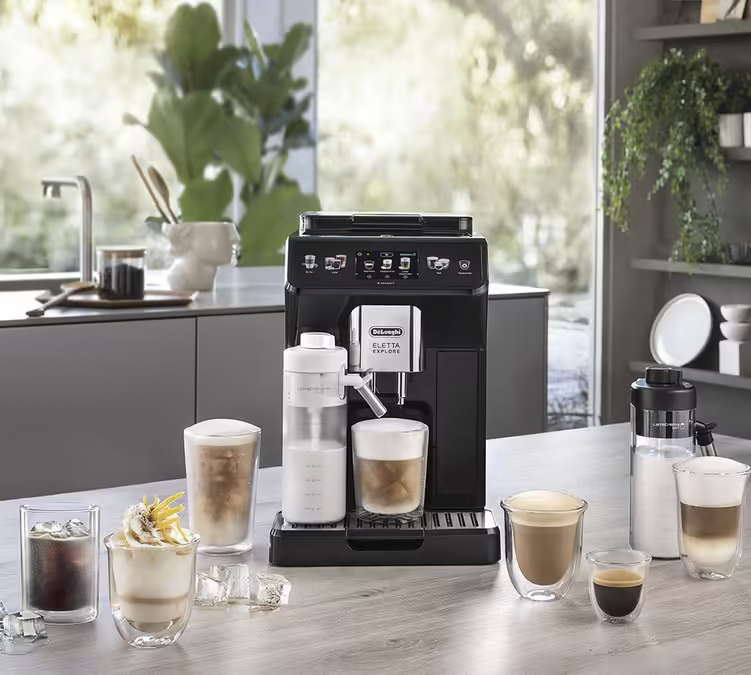 La macchina da caffè espresso con macina caffè DeLonghi Eletta Explore è stata progettata per permetterti di esplorare un numero massimo di gusti e ricette. Dai un'occhiata alle 42 ricette pre-impostate e scopri altre 120 ricette sull'app! L'innovazione principale è la caraffa Latte Crema Cool. È possibile utilizzarla per preparare un'ampia gamma di bevande fredde a base di latte.