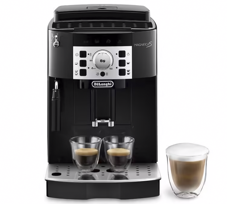 La macchina automatica DeLonghi Magnifica S 22.140.B è una delle macchine da caffè più popolari sul mercato. Le sue dimensioni piuttosto compatte offrono contenitori abbastanza grandi, adatti a una coppia che beve diversi caffè al giorno.