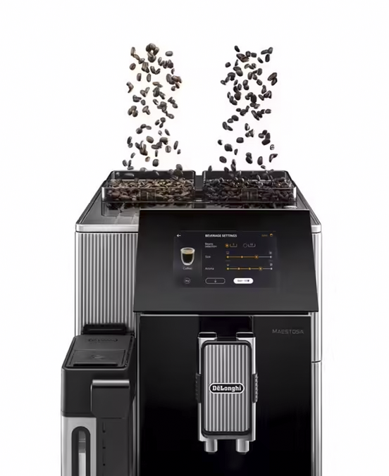 La macchina da caffè Maestosa EPAM è la prima macchina automatica DeLonghi dotata di un doppio contenitore per i chicchi.
