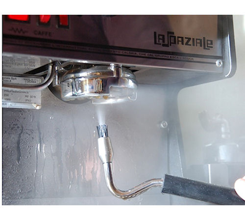 Tutto quello che deve fare è collegare il tubo flessibile al'ugello per il vapore e potrai pulire in modo semplice ed efficace l'unità filtro o il porta-filtro della tua macchina.