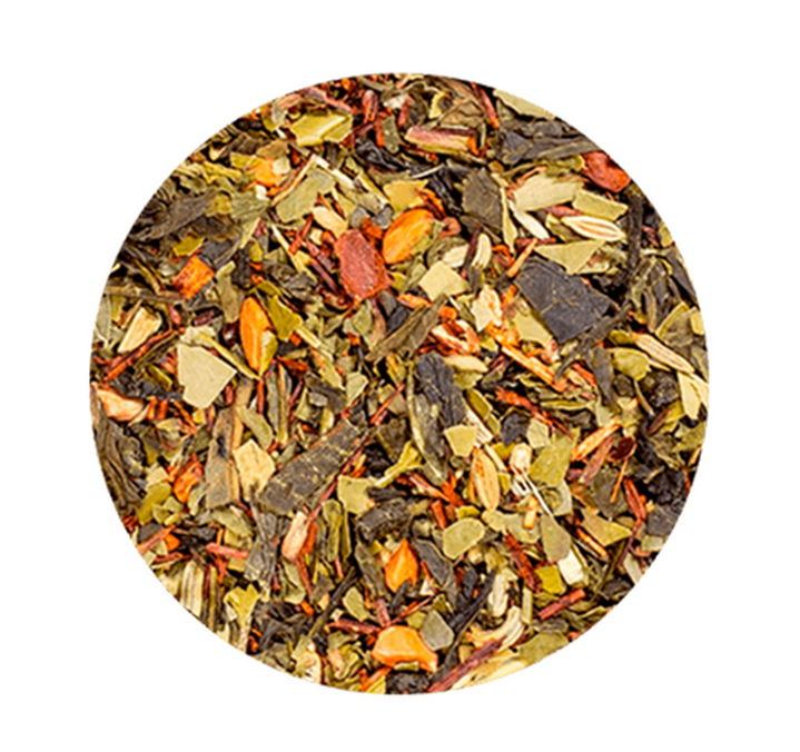 Ingredienti: tè verde (30%), rosa canina, mate (17%), rooibos, finocchio, menta, aroma di pompelmo, semi di guaranà e tarassaco.