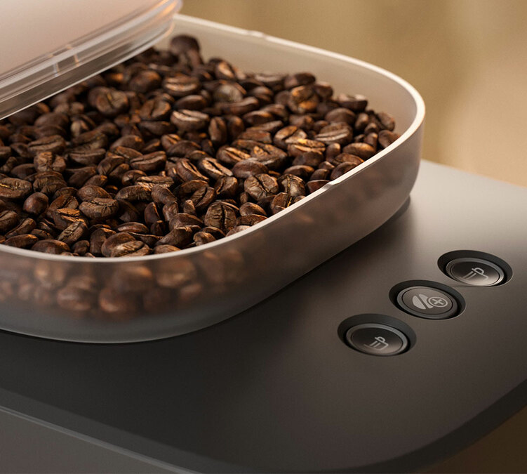 Il macinacaffè non richiede alcuna regolazione, basta inserire i chicchi di caffè nella tramoggia e La Baristina farà il resto.