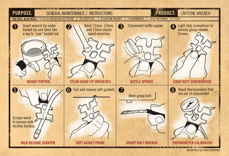 Questa pinza multifunzione per baristi di Pallo ti fornisce tutti gli strumenti necessari per la manutenzione di un macchina per caffè espresso
