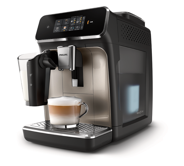 E ce n'è per tutti i gusti grazie ai 4 drink offerti dalla EP2336/40: espresso classico, cappuccino, caffè nero, passando per il cappuccino. È disponibile anche l'acqua calda, che delizierà gli amanti del tè e degli infusi. Questa macchina dispone anche di uno sportello per il caffè macinato (caffè già in polvere), ideale per un decaffeinato la sera, ad esempio.