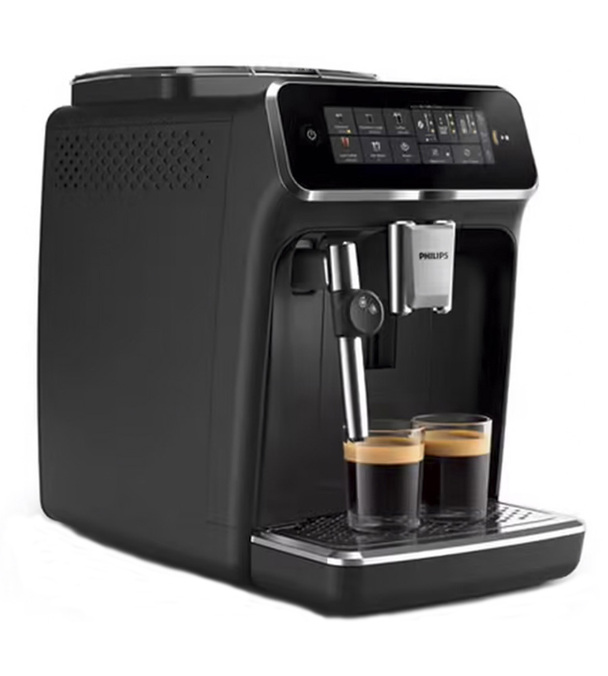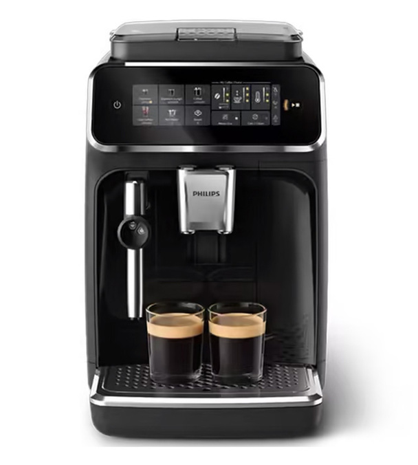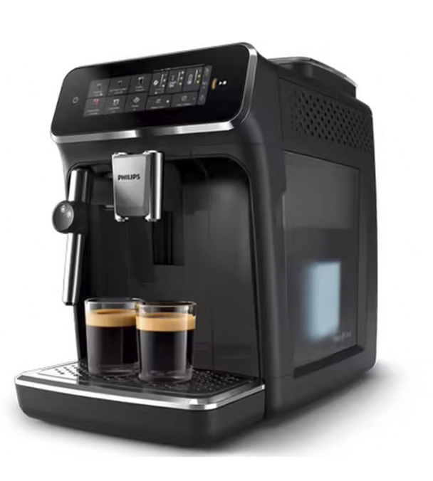 La macchina da caffè in grani Philips EP3321/40 è un bellissimo apparecchio con un elegante rivestimento nero laccato. Le finiture argentate di questa versione, che ha l'ugello Silent Brew 3000 di Philips, le danno un look sofisticato. Anche se è piuttosto piccola, ha un serbatoio dell'acqua sul lato destro, che la rende ancora più compatta.