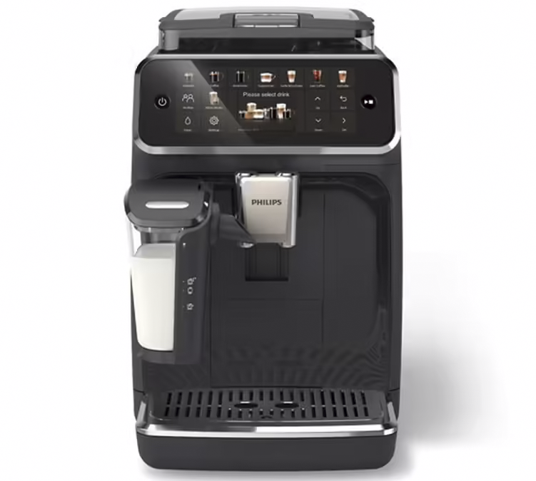 Questa elegante macchina automatica Philips per caffè in chicchi conserva le dimensioni dei suoi predecessori, pur vantando un design moderno e compatto che si integra perfettamente nella tua cucina. Il pannello frontale nero aggiunge un innegabile tocco di modernità. Le capacità dei contenitori sono notevoli: