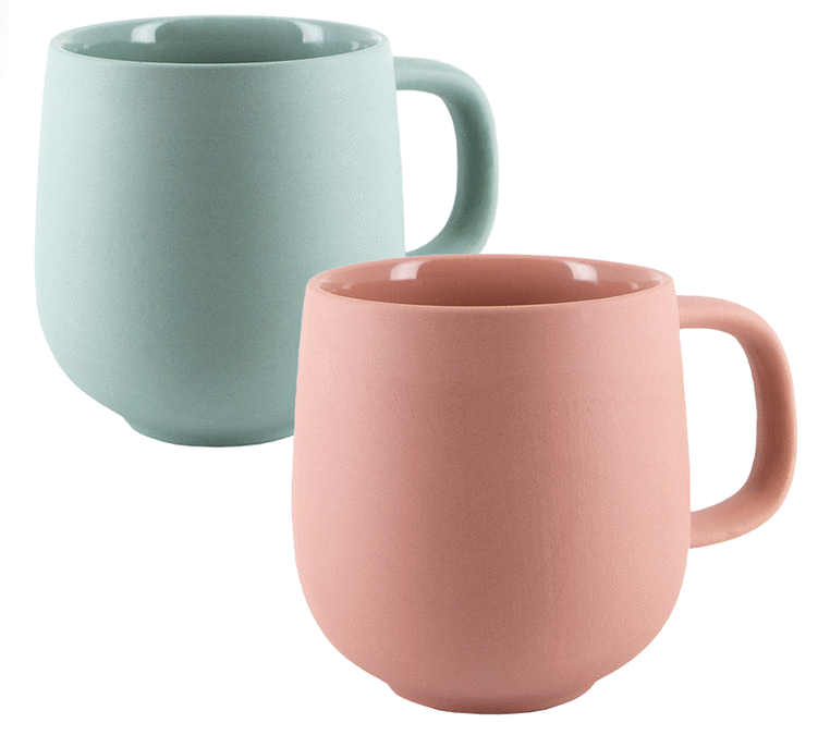 Set composto da due tazze mug in ceramica Pylano da 33 cl, una nei toni caldi del attone, l'latra dal colore  perfette per un caffè americano, un tè, una tisana o una bevanda calda a base di latte. Moderne e design, ma al tempo stesso dalle linee morbide, queste tazze conquistano con il loro aspetto chic ed elegante che aggiunge un tocco bohémien alla tua cucina.