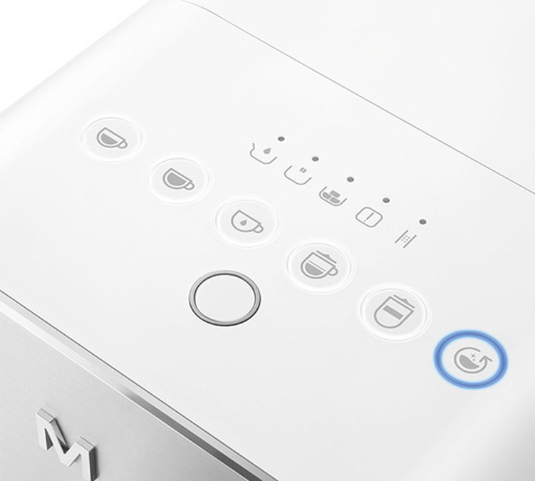 La macchina caffè espresso con macinacaffè Smeg è progettata per offrire un comfort di utilizzo ottimale. I pulsanti piatti situati sulla parte superiore della macchina consentono un utilizzo pratico e facile. Offre due menu distinti, ciascuno associato a un pulsante specifico. I LED cambiano colore per indicare il menu selezionato: bianco per il primo menu e arancione per il secondo.