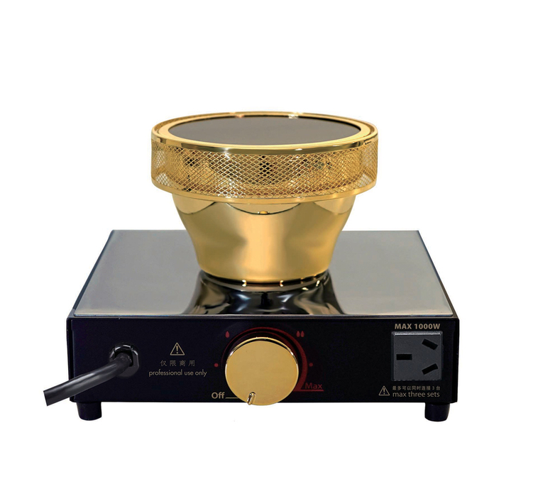 Stazione di riscaldamento per la macchina da caffè sottovuoto Hario Siphon . Apparecchiatura con touch screen per un perfetto controllo del tempo di riscaldamento e della potenza. Viene fornito un adattatore per l'uso in Italia.