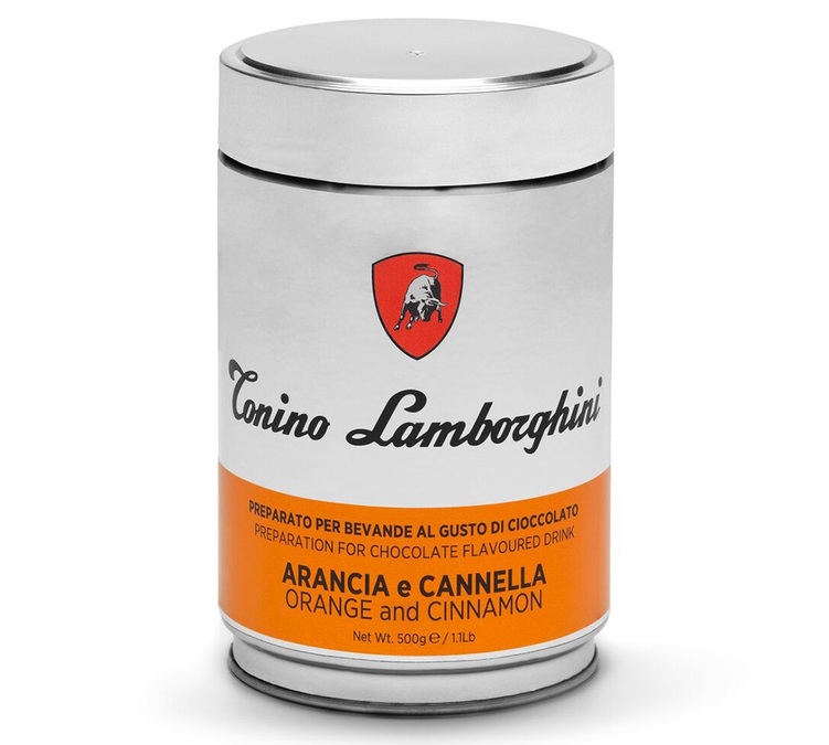 Una lattina da 500 g di cacao in polvere aromatizzato con arancia e cannella firmata Tonino Lamborghini. Una ricetta tradizionale e golosa realizzata con il miglior cacao e il sapore di arancia e cannella.